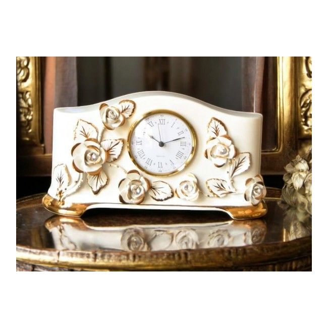 HORLOGE DE TABLE Style baroque en céramique artistique avec détails en or 24 carats Fabriqué en Italie