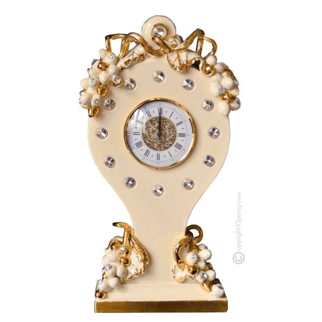 HORLOGE DE TABLE Style baroque en céramique artistique avec détails en or 24 carats Fabriqué en Italie