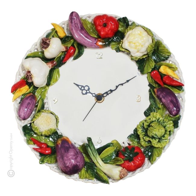 HORLOGE Horloge murale artistique en céramique de style baroque, authentique faite et peinte à la main Made in Italy