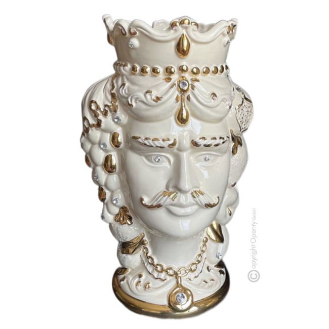 TÊTE MÂLE BRUN Cachepot et décoration de table artistique en céramique avec détails couleur or 24 carats