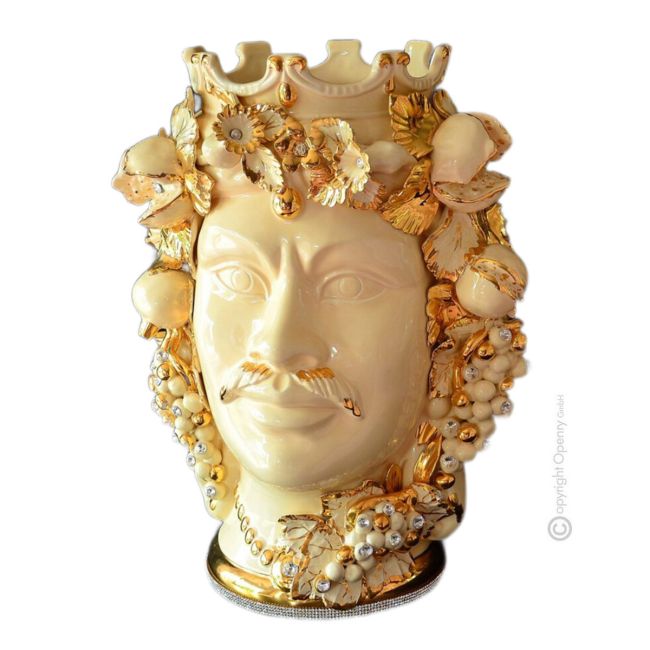 TÊTE MÂLE BRUN Cachepot et décoration de table détails artistiques en céramique Cristaux Swarovski couleur or 24 carats