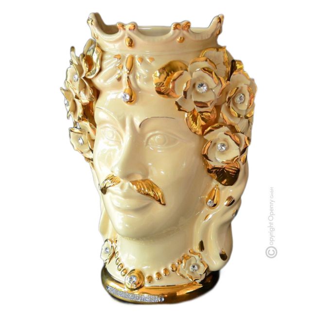 TÊTE MÂLE BRUN Cachepot et décoration de table détails artistiques en céramique Cristaux Swarovski couleur or 24 carats
